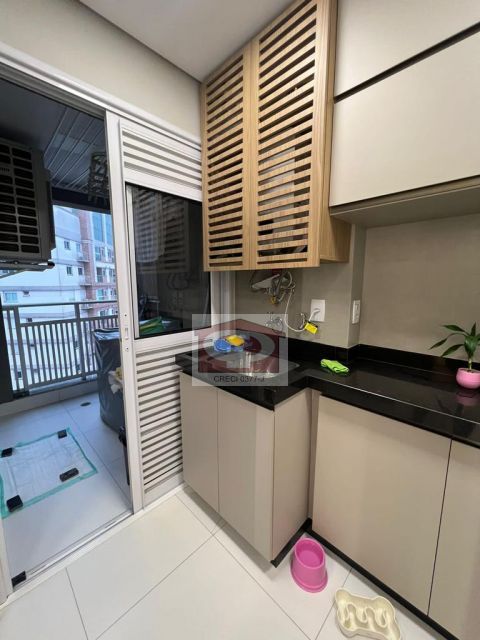O apartamento é inteiro mobiliado, com 02 quartos sendo uma suíte grande (com closet), 03 pontos de ar condicionado (suíte, quarto e churrasqueira).