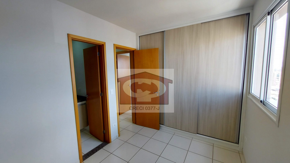 Apartamento com 03 quartos, 01 sendo suíte com ar condicionado, cozinha completa, 02 vagas de garagem, armário no corredor, gabinetes nos banheiros, box nos 02 banheiros, espelhos e bancada passa prato.