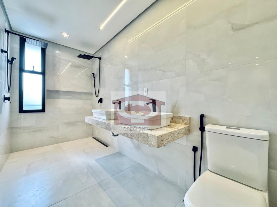 COM 3 QUARTOS, SENDO UMA SUITE MASTER E DUAS DEMI-SUITE, LABABO, CHURRASQUEIRA GOURMET, ESTRUTURA PARA JACUZZI, GARAGEM PARA QUATRO CARROS, SENDO DUAS VAGAS DESCOBERTAS, PISO VINILICO NO PAVIMENTO SUPERIOR, PORCELANATO NOS BANHEIROS, LAVABO E TERREO.PERSIANA INTEGRADAS AUTOMATIZADAS